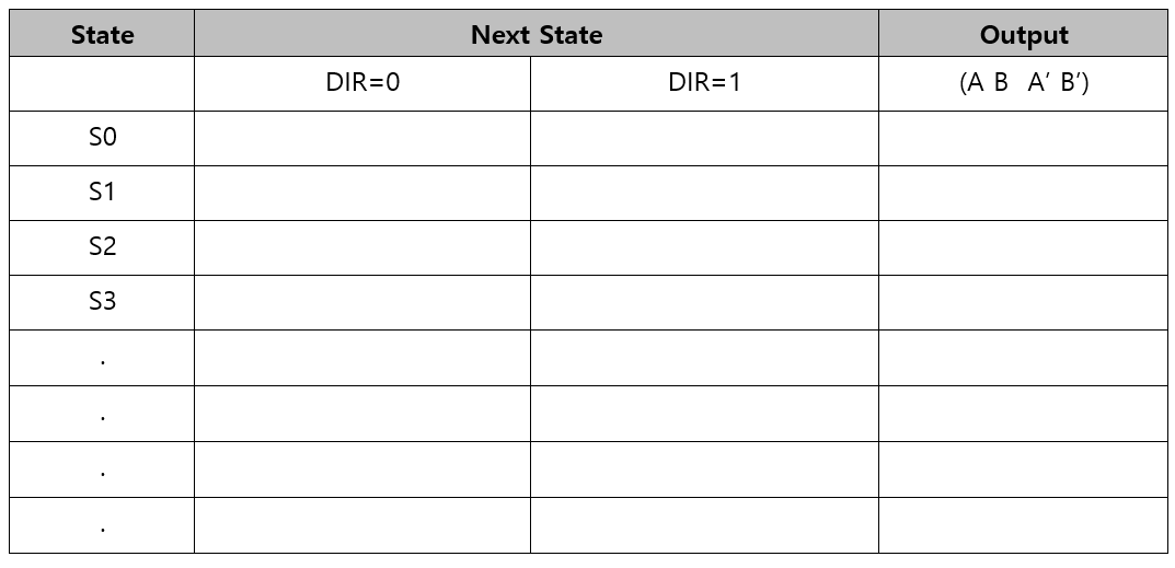 Draw a State Table for Full-Step Sequence. You can choose either Moore FSM or Mealy.