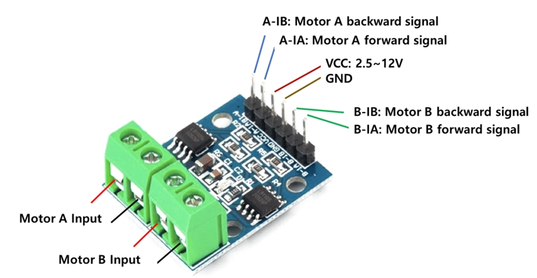 A- IA: PWM pin (0~100% duty) for Motor A
