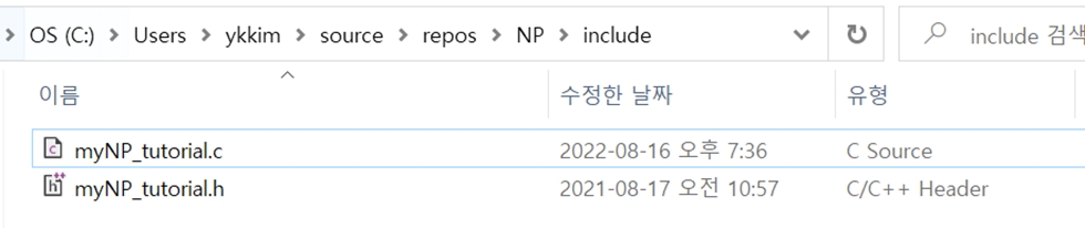 myNP_tutorial.cppandmyNP_tutorial.h.C:\Users\yourID\source\repos\NP\includeThis is the same header file as in Tutorial: NP Library Header Files Tutorial: NP Library Header Files #Step 3. Create library header files