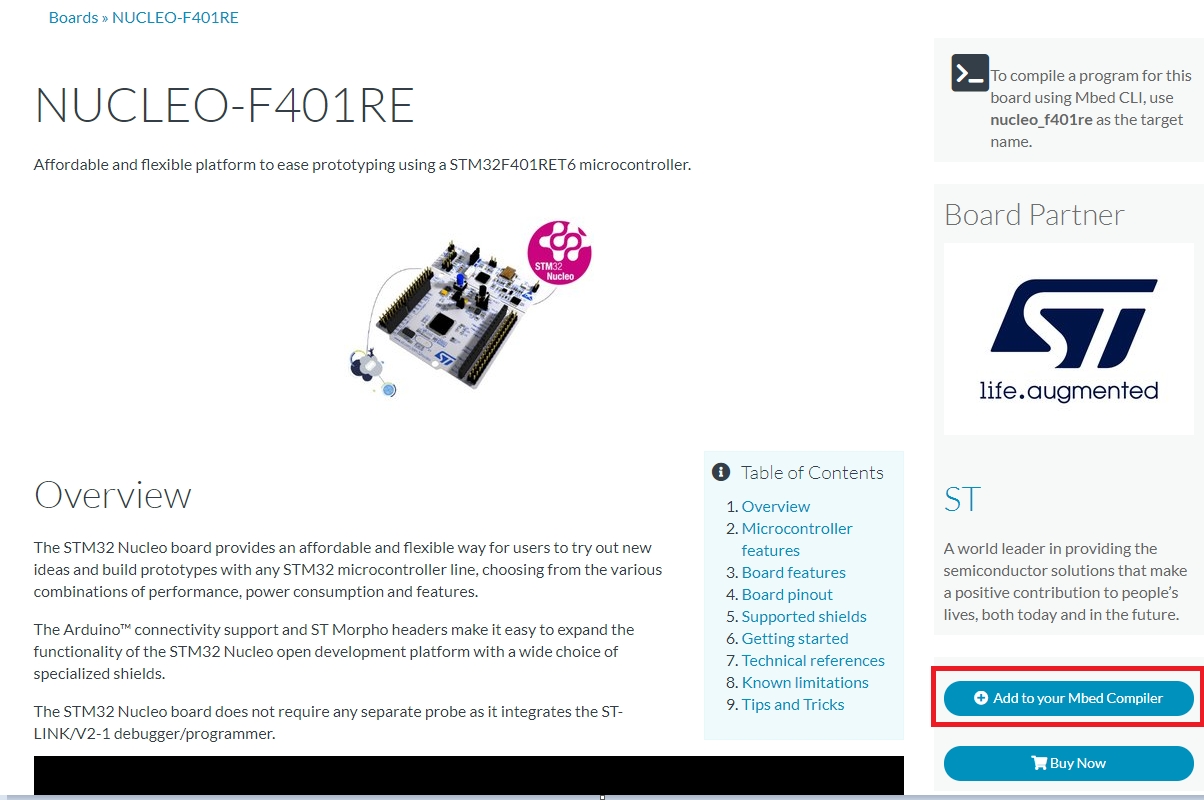 Click ‘Add to your Mbed Compiler’ and ‘Open Mbed Complier’