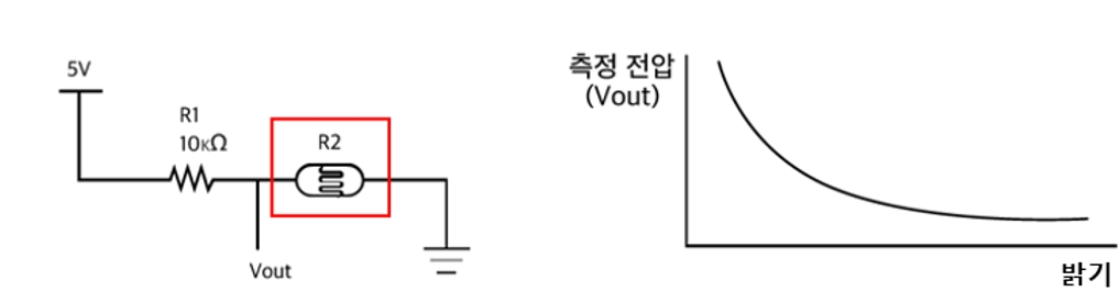Photo-resistor module outputs low voltage under a bright condition, and vice versa.