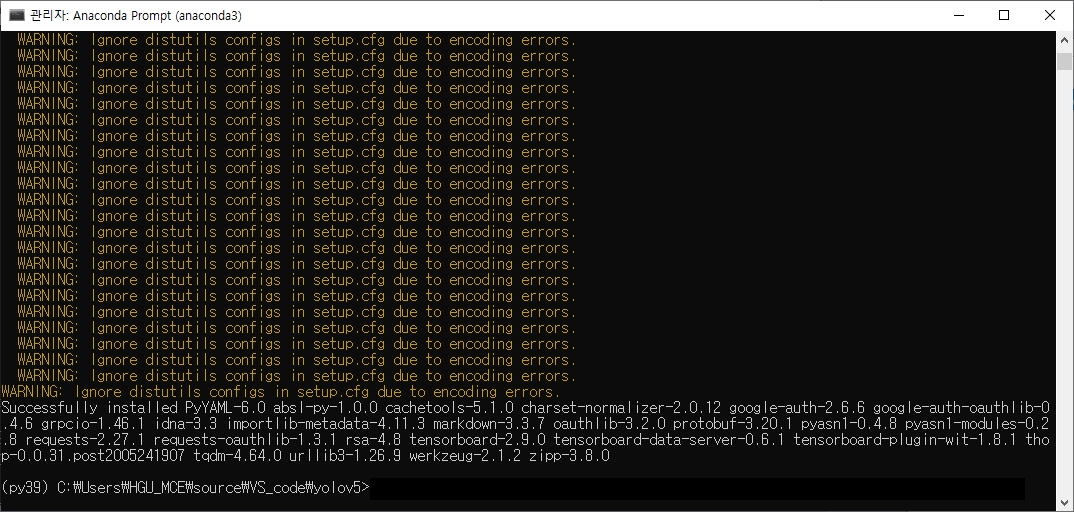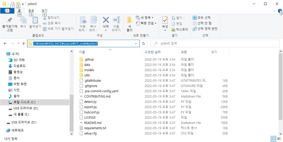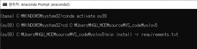 cd $YOLOv5PATH$ // [ctrl+V] νμ¬ λ³΅μ¬ν yolov5 κ²½λ‘ λΆμ¬λ£κΈ° (κ·Έλ¦Ό μ°Έμ‘°)