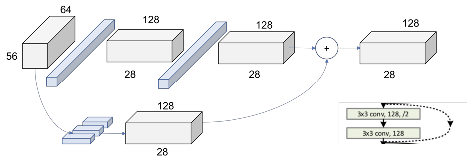 Since the volume got modified we need to apply one of our down sampling strategies. The 1x1 convolution approach is shown.