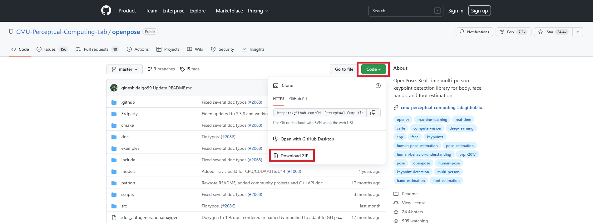 Download OpenPose ZIP file below.(openpose-master.zip)