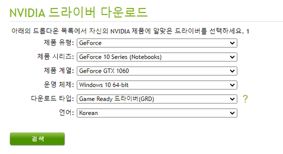 Download Site: https://www.nvidia.co.kr/Download/index.aspx?lang=kr