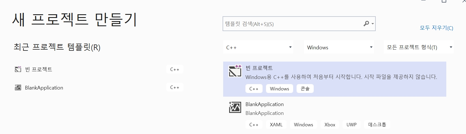 방법 1) 새 프로젝트 만들기 > 빈 프로젝트