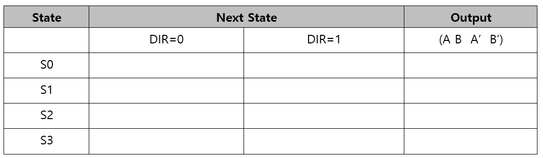 Draw a State Table for Full-Step Sequence. You can choose either Moore FSM or Mealy.
