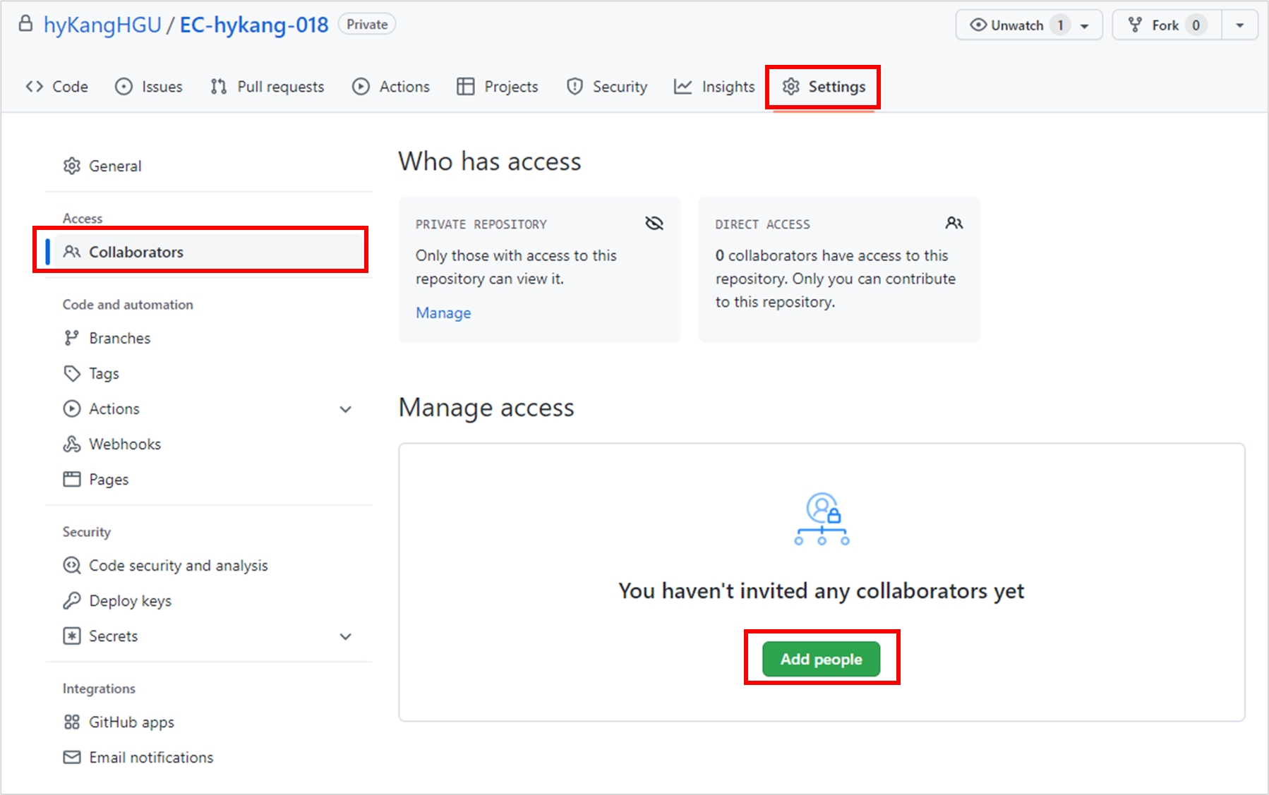 Click [Settings] - [Collaborators] - [Add people]