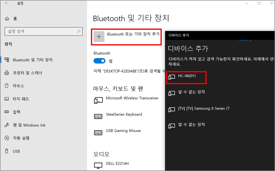 2. Search and add the bluetooth named "HC-06(n)". (n = 01, 02, ... )